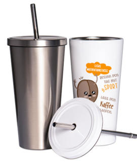 Wir bedrucken Ihnen eine Vielzahl an Tassen, Edelstahlbechern- und Flaschen.
